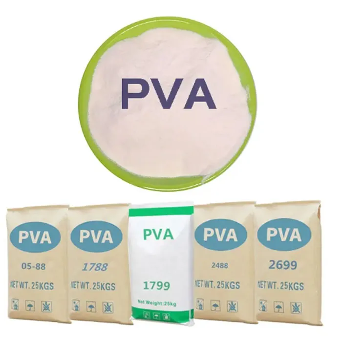 Poly (alcool vinilic) pulbere (PVA) utilizată în mod obișnuit ca aditivi pentru mortar, chitul de perete și adezivul de gresie, poate îmbunătăți retenția de apă și poate reduce frecarea mortarului, îmbunătățind astfel eficiența muncii și calitatea, împiedicarea fisurilor de tencuire, scăderea, creșterea rezistenței la aderență și netezime. Pulberea se poate dispersa rapid în apă, îmbunătățește proprietatea inițială de adeziune a materialelor de construcție. Utilizat în principal în liant cu strat subțire, liant flexibil, liant de perete de izolare termică și adăugați agent de îmbinare, etc.